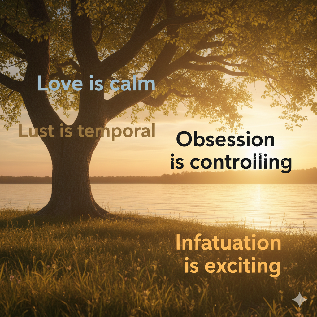 Love is calm, consistent, and selfless. Lust is physical and temporary. Obsession is controlling and unhealthy. Infatuation is exciting but short-lived.